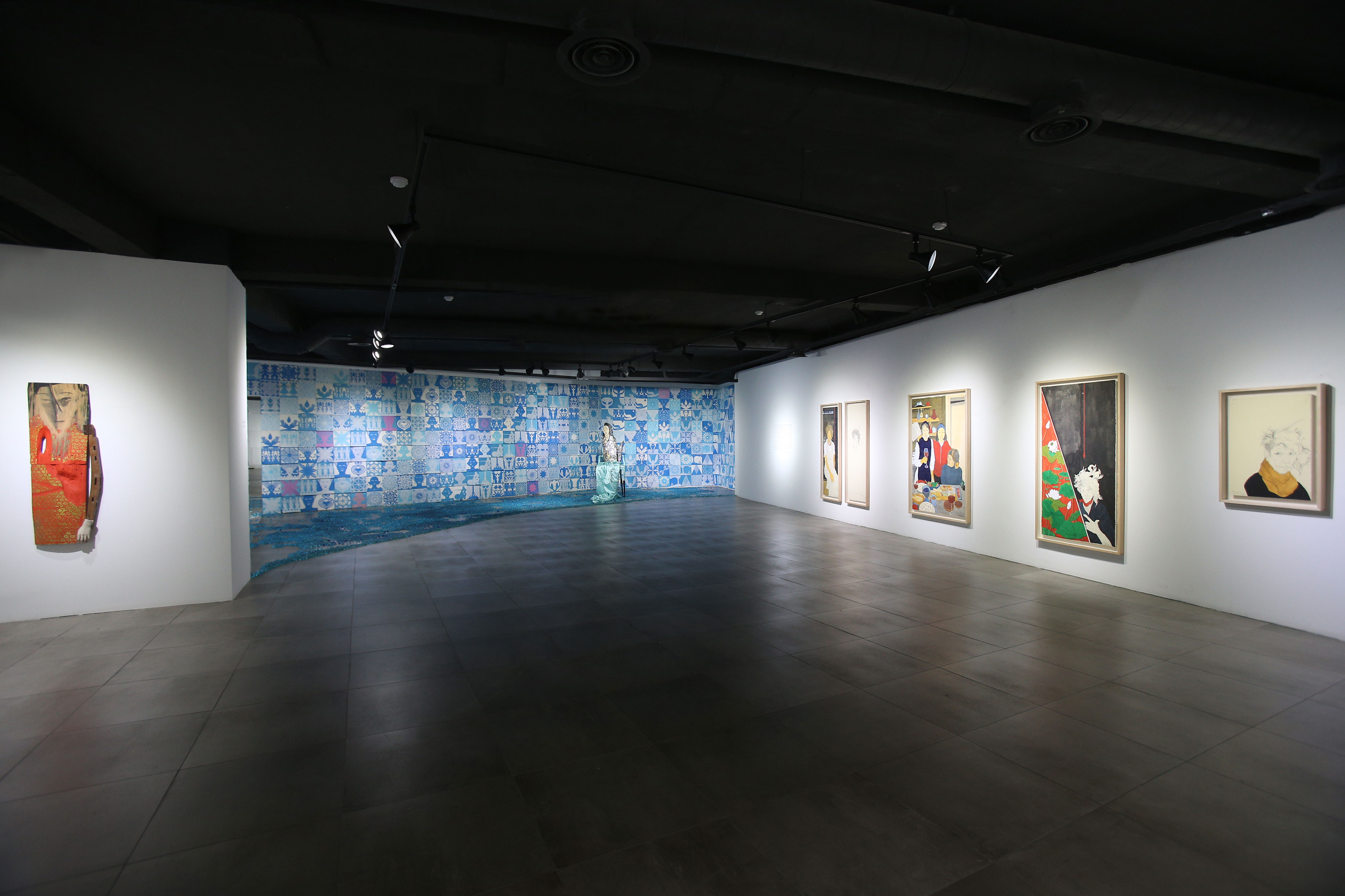 1995년 핑크룸부터 시작된 ‘ROOM 시리즈’는 블루,화이트,그린 으로 바뀌면서 진행해온 작가의 상징체계가 표상된 공간이다. 이번 개인전에서 발표되는 블루룸(2010)은 우리나라 최초 무가(巫歌)인 바리데기를 주제로 한 작품이다. 바리데기는 남존여비사상의 희생자이자 전통적인 아버지의 계보를 거부하고 무속인의 삶을 택한 주체적인 여성이다. 작가는 잊혀진 설화적 이야기에 예술적 상상력을 더해 이를 새롭게 복원하는데, 여기서 블루는 삶과 죽음을 관장하는 바리데기의 푸른 생명수를 의미화한 것이다. 룸 연작에서 주목되는 것은 갖가지 문양의 도상학적 특징이 돋보이는 한지 오리기 작업이다. 평소 무당에 관심이 많은 작가는 무당이 굿을 준비할 때 만들고 굿이 끝나면 태우는 종이꽃에서 아이디어를 얻었다고 한다. 단순 노동을 반복하면서 여성적인 재료인 한지를 오린 수공예 작업은 작가의 수행적인 미학을 환기시키며, 바닥에 흩뿌려진 푸른구슬과 자개장식, 채색목조각에서 장르 간 경계를 넘나드는 공예적 감수성이 돋보인다. 오려진 푸른색과 흰색이 섞인 한지는 여성,식물,기하학적 이미지로 각각 분할되어 벽면 전체를 뒤덮는다. 블루는 파랑새처럼 희망을 상징하면서 슬픈 외로움을 환기시킨다. 그래서 방 한가운데 앉아있는 바리데기를 형상화한 조형물은 해방된 여성의 주술적인 힘이 느껴짐과 동시에 슬픈 구원의 눈빛을 담고 있다. 간간히 보이는 핑크색 한지, 쇠고리 형상을 한 의자다리도 이러한 바리데기의 정처없는 불온함의 표현이다. 작가가 구현해낸 이미지의 세계는 방 한켠에 벽면 높이보다 낮게 설치된 거울을 통해 무한하게 증폭되며 그 안에 들어선 관람객들은 바리데기의 밀려오는 슬픈 파도와 함께 유영하며, 푸르게 물들어 진다.